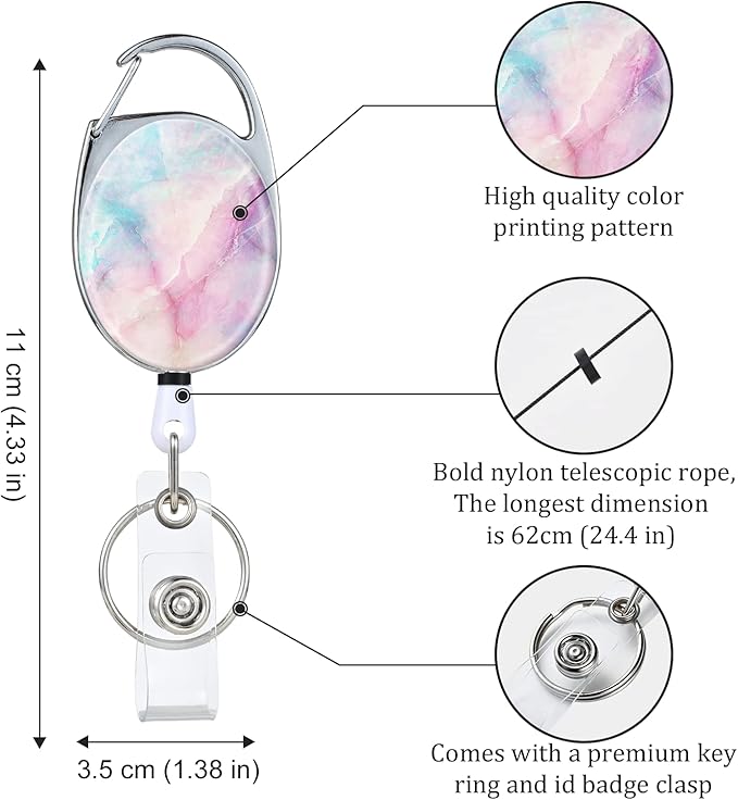 - 【Exquisite Patterns】Double-sided high-quality color printing retractable badge holder with various exquisite patterns such as marble, flowers, landscapes, etc.