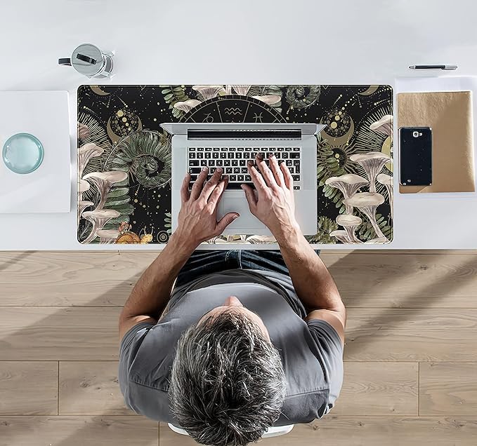 Moon Mushroom Gaming Desk Pad Cute Dark Tarot Mousemats Desk Mat, Forest Extended Large Anime Mouse Pad, Gamer Desk Decor Setup, Full Desk Mouse Keyboard Mat XXL, Laptop Desk Pad 31.5"x15.75"
