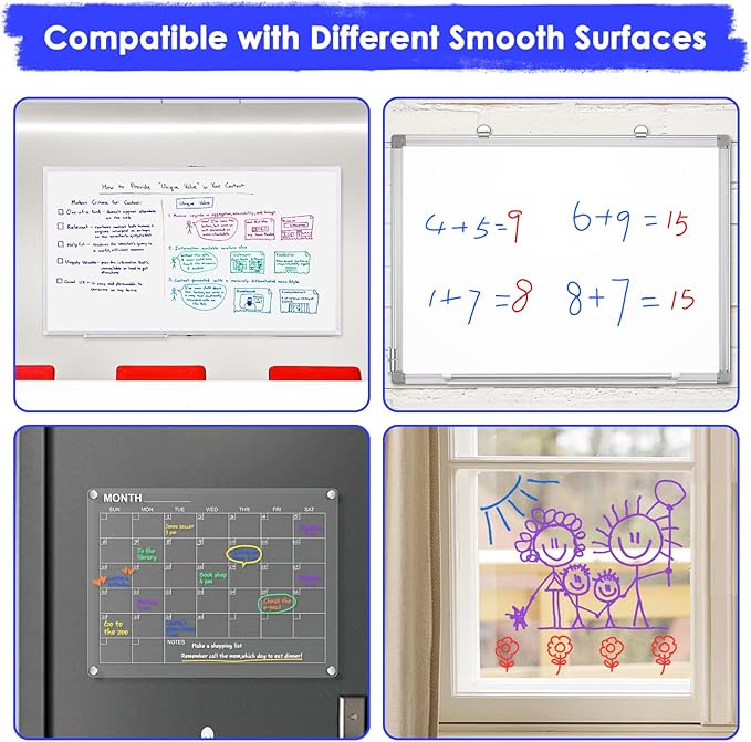 - 8 Bold Colors for Writing or Decoration: The fine point dry erase markers makes your writing and drawing stand out, perfect for presentations, notes, and creative expression