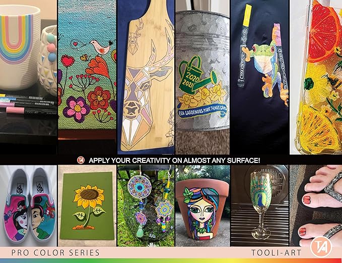 - ✔️MULTI SURFACE –The highly pigmented ink gives you nice opaque coverage on most surfaces such as stone, glass, wood, metal, fabric, porcelain, canvas, plastic, paper, cardboard, pottery, shoes, shirts, etc. The fade-resistant paint works great on dark and light surfaces. It dries quickly to prevent smudging.