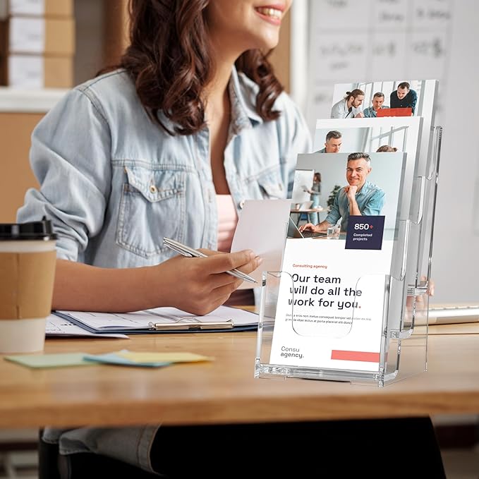 - MULTIPURPOSE: Our 3 tier brochure organizer fits up to 4 inches wide regular size materials. You can place your pamphlets, company brochures, newsletters, publications in this 3-tier rack for people to see and take.