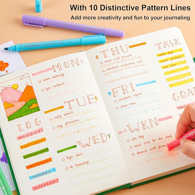 - Dual Tip Pattern Pens: 12 bright colors with dual tips: the pattern tip is ideal for writing in journals and marking notebooks, and the 2.5mm chisel tip can create both broad and fine lines, making it perfect for highlighting and underlining