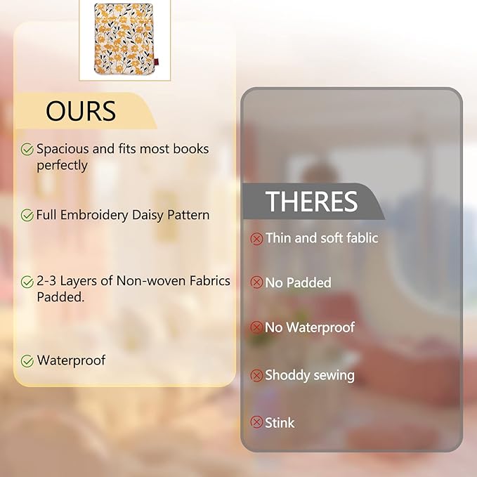LParkin Daisy Flower Embroidery Book Sleeve with Zipper for Readers Protector Cover Gift for Book Lovers, 11x 8.5 Inch Washable Fabric, Daisy Yellow (Yellow)
