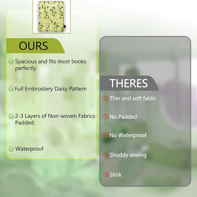 - White Daisy Flower Embroidery Book dust jacket covers : This book cover is a hand embroidered item rather than a printed one. Both sides of the book cover protector are embroidered with beautiful daisy pattern, which is layered, nice and soft to the touch and comfortable, and the embroidery thread is brightly coloured and does not fade easily. If you have someone close to you who has a love of daisy, the beautiful daisy flower pattern is sure to bring great surprise and pleasure to him or her.