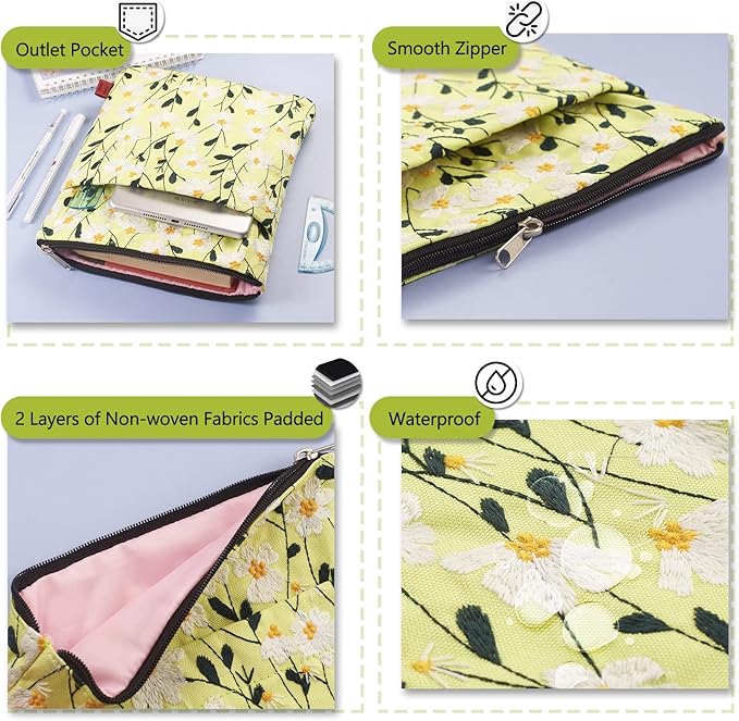 LParkin Daisy Flower Embroidery Book Sleeve with Zipper for Readers Protector Cover Gift for Book Lovers, 11x 8.5 Inch Washable Fabric, Daisy White(White)