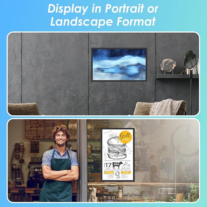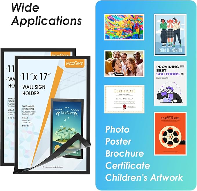 - Magnetic Sign Holder: The 11 x 17 sign holder is made of soft and durable PVC material for easy viewing, The strong magnetic border design allows you to quickly insert and replace paper. Our wall sign holder has a self-adhesive backing that makes it easy to adhere to any smooth wall and not easy to fall off.