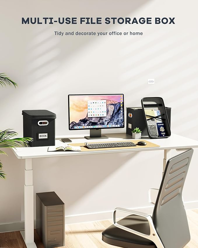 - 【Sturdy & Stackable】Portable storage box is made of well-made linen fabrics and durable material, with good support and bearing capacity, and the box top can withstand 100 lbs. The document boxes can be stacked when in use, or folded for easier storage when not in use.