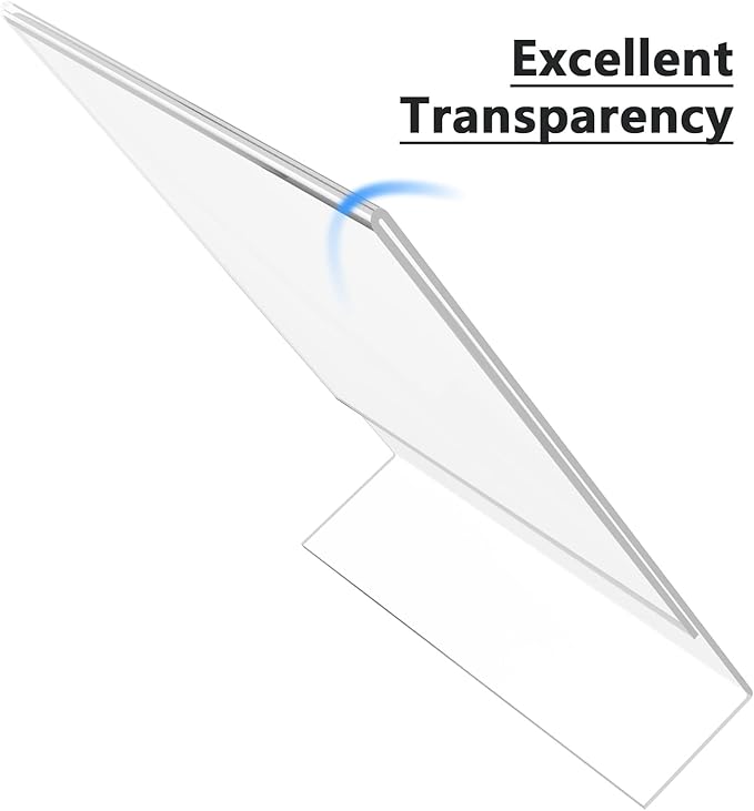 - Stable Slant Back Design: Our acrylic display stand is designed with a wide stable base. With the innovative slant-back self-standing design, our acrylic sign holder is stable enough which makes it an ideal choice for displaying images, brochures, and pamphlets and important information in any location.