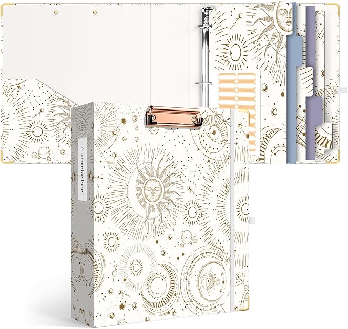 Ospelelf 3 Ring Binder, 2 Inch Letter Size (11" x 8.5") with 5 Tab Dividers, File Folder Labels and Low Profile Clipboards, Tarot Cards Binder for School and Office Supplies