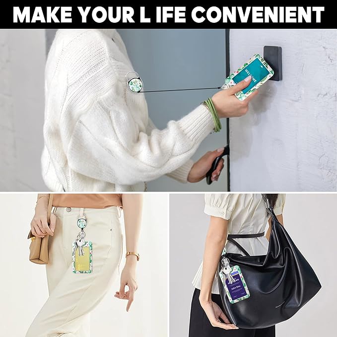 - Easy to Use: Our ID badge holder with lanyard are easy to use,as badge reel accessories can be attached to any lanyard ,such as ID lanyard,phone lanyard,name tag holder or cruise lanyard for ship cards.