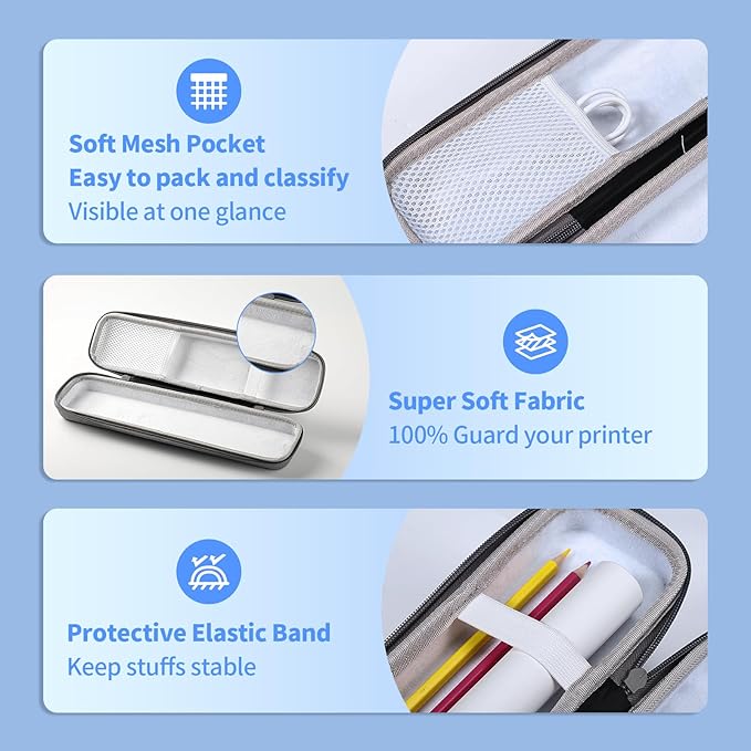 - Protective Inner Design - Super Soft Fabric, 100% Guard your baby printer; Protective Elastic Band, keep stuffs stable and organized.
