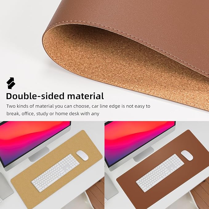 - Elevate Your Workspace: Our reversible desk pad is designed to complement any office or home desk with its premium materials and elegant black thread stitching. The natural cork base provides extra grip to keep your desk mat in place.
