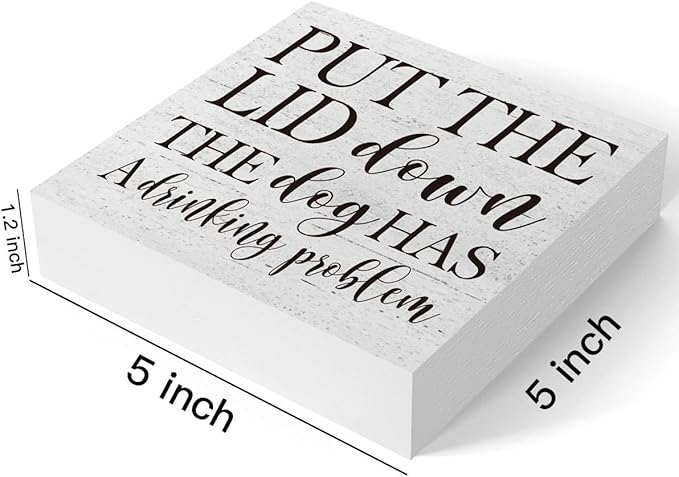 mmiishe Put the Lid Down the Dog Has a Drinking Problem Wooden Box Sign Decorative Funny Bathroom Wood Box Sign Home Decor Rustic Farmhouse Square Desk Decor Sign for Shelf 5 x 5 Inches