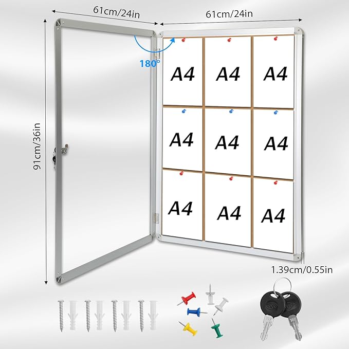- SECURE AND PROTECTED NOTICE BOARD: Enclosed bulletin board keep important information safe from the elements, theft, or tampering with lockable acrylic doors and key mechanisms.Save valuable wall space and maintain a clean and organized appearance in offices, schools, or community centers.