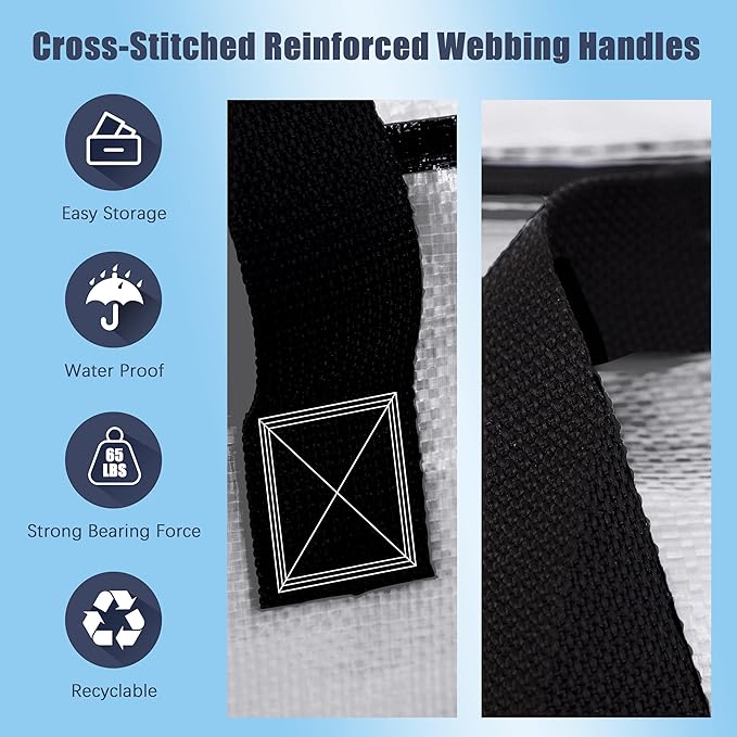 - FOLDABLE MATERIALS: They also fold flat so they can be stored for a future move without taking up too much space. just fold and put them away into shelves, or anywhere. Easily view what is inside the bag with the convenient and clear see-through design.