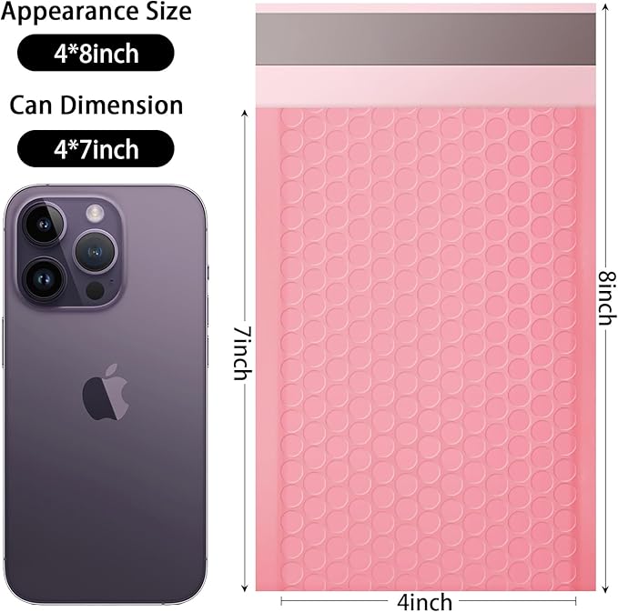 - ✨【Bubble Mailers Size】 Exterior Size: 4 x 8 inch. Usable size: 4 x 7 inch. our mailer envelopes are lined with unique air cellular layers and 360°strong air bubble technology, which can help absorb shock during shipment and provide effective shipping protection for your products.<br>