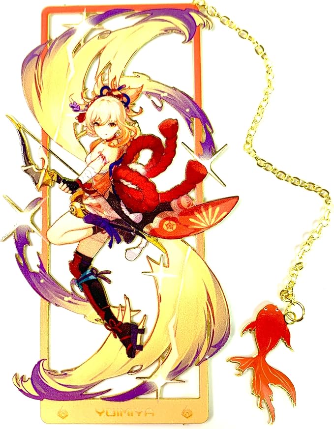 - Ignite your reading experience with the captivating Yoimiya brass bookmarks inspired by Genshin Impact, the beloved anime game, featuring a stunning Quadratic element design