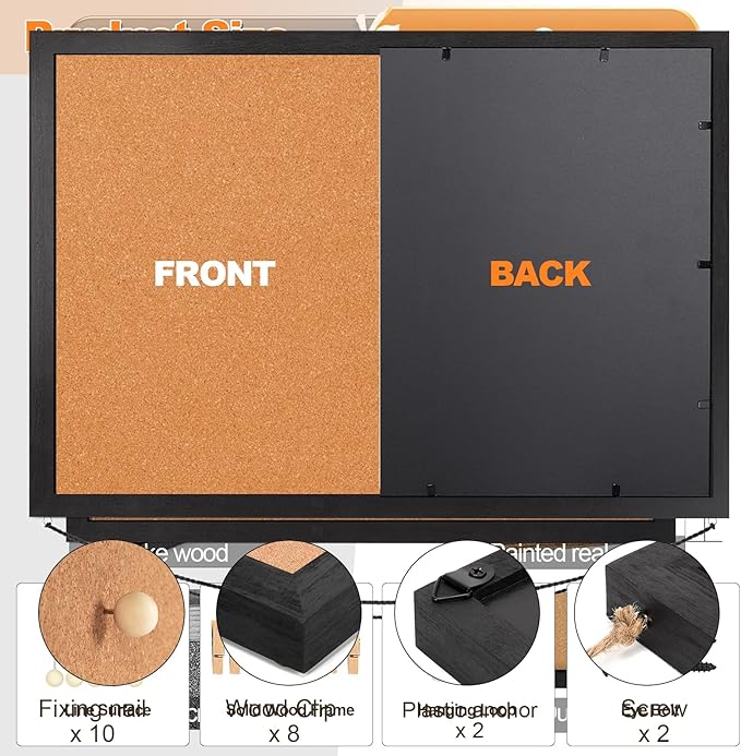 - Natural Cork Board - This bulletin board measures 23 x 18 inches and is crafted from top-notch, dense cork that withstands long-term use, without unsightly pinholes. Compatible with almost all thumbtacks, this reusable cork board for walls is a must-have and pleasing to the eye.