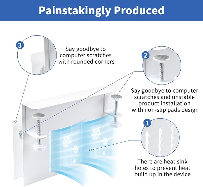 - No Drilling & Easy To Install: Our under desk laptop mount, desk side laptop holder is easy to install. And the silicone cushion can prevents scratches on desks and other objects, the rounded corners design can also avoid scratches. No extra tools are needed and importantly it won't damage your desk. It only took you 2 minutes to install our clamp on desk organizer to your desk