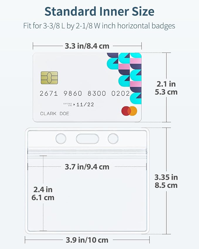 - Hold 3 Badges: Inner size: 3.7" L x 2.4" W. Accommodate up to 3 standard-sized cards like credit cards, ID cards, access cards, driver’s licenses, etc. BUT ONLY FIT FOR 2 thicker cards like proximity cards or RFID badges!