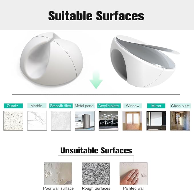 - Easy to install: Remove the protective film, stick the cord organizer, and drain the air from the contact surface. Suitable for a variety of smooth surfaces, like tiles, steel, glass, mirrors, painted wood