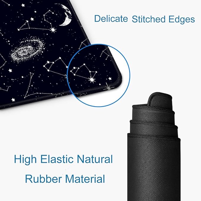Large Gaming Mouse Pad with Stitched Edges, Black Constellation Desk Mat Extended Keyboard Pad, Non-Slip Rubber Base Desk Pad for Keyboard and Mouse, 31.5X11.8 inch, Sun and Moon