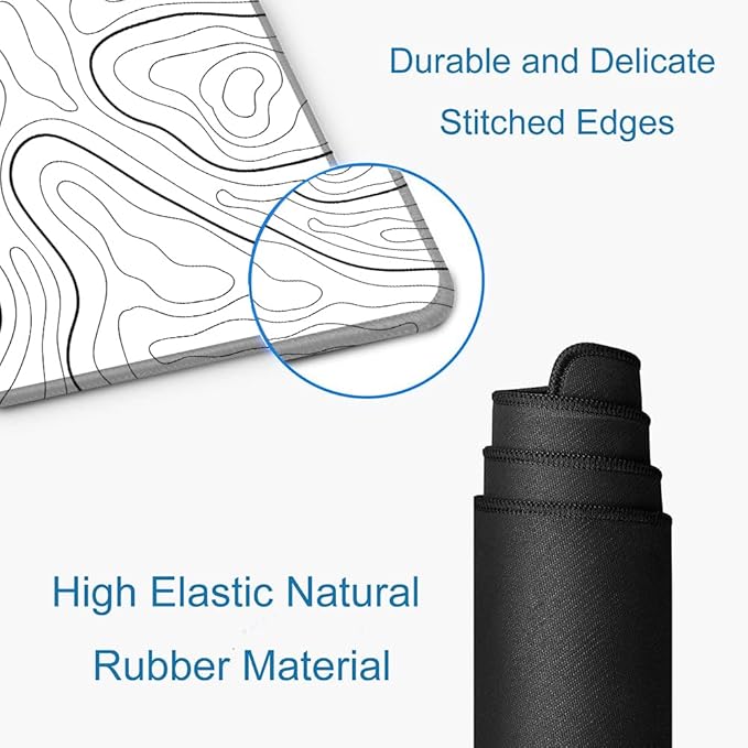 Mouse Pad Large, Extended XL Gaming Mousepad, Non-Slip Rubber Base Minimalist Keyboard Mouse Mat Desk Pad for Work, Game, Office, Home, 31.5 x 11.8 in, White Topographic Map Lines