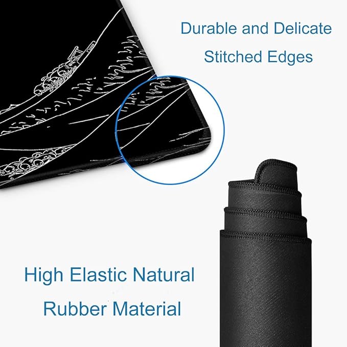 Large Mouse Pad Gaming, Extended Mousepad with Stitched Edges, Non-Slip Rubber Base Keyboard Desk Mat Mouse Pads for Work, Game, Office, Home, 31.5 x 11.8 in, Black Wave of Kanagawa