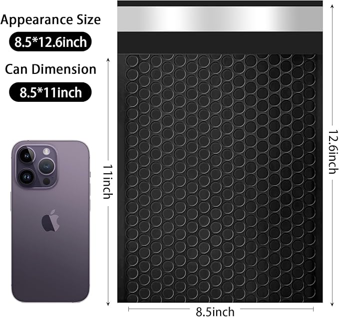 - <b>✨【Bubble Mailers Size】</b> Exterior Size: 8.5 x 12 inch. Usable size: 8.5 x 11 inch. our mailer envelopes are lined with unique air cellular layers and 360°strong air bubble technology, which can help absorb shock during shipment and provide effective shipping protection for your products.<br>
