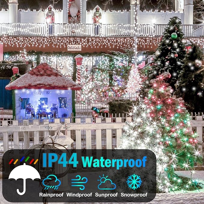 - ☔【IP44 Waterproof for Outdoor Decorations】Christmas lights outdoors can be used normally in heavy rain, and don't damage the string light even in strong winds and blizzards. It's perfect for indoor & outdoor or anywhere you want to decorate. Create a romantic atmosphere for Christmas, new year, weddings, holidays, party, night party, birthday, bar, restaurant, home, garden, patio, house, stage etc.