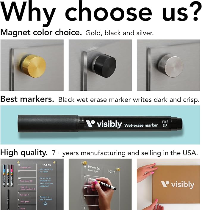 - Clear Acrylic Command Center for Your Fridge from Visibly, designed in the USA. 9” X 12”. Acrylic is a superior writing surface for wet-erase or dry-erase markers. The markers erase completely, without staining or ghosting.