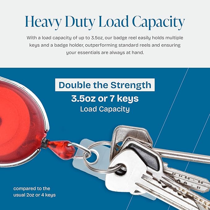 - 【Heavy Duty】 Max loading weight is 3.5oz or 7 keys compares to 2oz or 4 keys of other items on the market. Comes with key ring and perfect as retractable key chain.