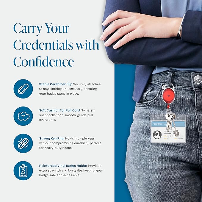 - 【Top Quality】Upgraded and reinforced construction makes the most solid and durable retractable badge holder of this kind on the market. we're different in all of these products that look the same!