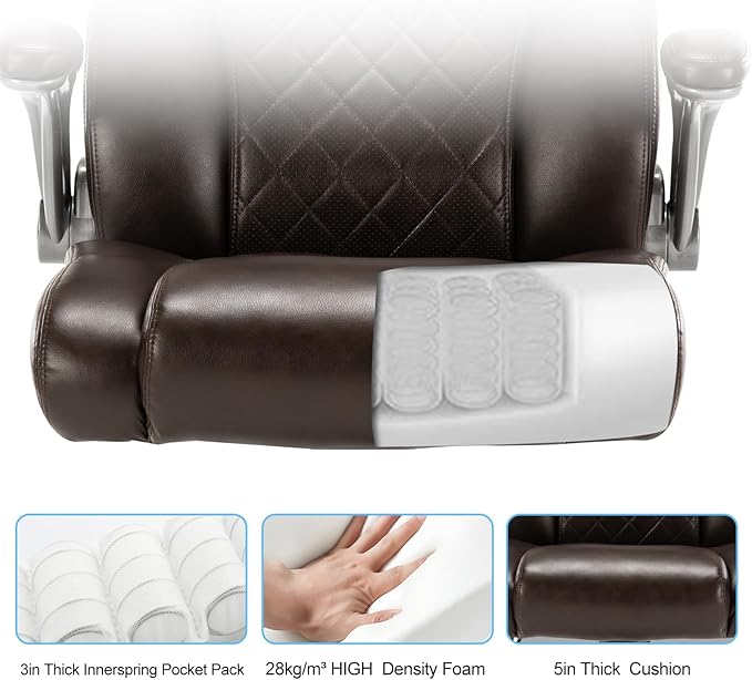 - 【DESIGNED FOR COMFORTABLE AND EFFICIENT WORK】 Ergonomically designed with a backrest height of 31 inches and a seat width of 22 inches. The thick cushion (5 inches thick) features embedded spring coils, providing a comfortable seating experience similar to a sofa, allowing you to sit for extended periods without fatigue and work efficiently.