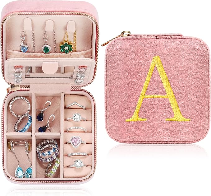 Parima Gifts for Girls - Gifts for Kids, Girl Gift Idea, 6 7 8 9 10 11 12 13 14 15 16 Year Old Girl Birthday Gifts, Teen Girl Gifts Trendy Stuff Travel Jewelry Case Box - Letter A, Pink