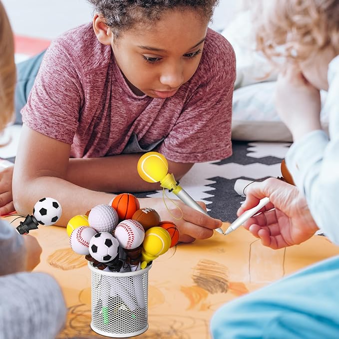 - Sport Themed Pens: the package include 6 different sport pens, soccer ball, football, tennis, basketball, golf ball and baseball, these novelty pens are designed with a hoop and a small realistic ball at the top, press it, the ball can eject, let your friends feel happy and relaxed, you can play with friends, harvest more fun