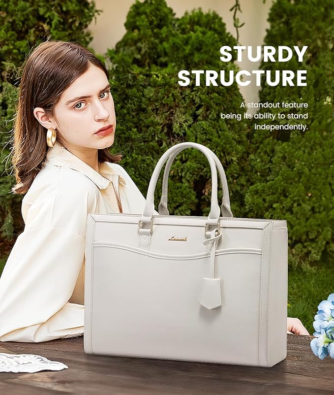 • 【Elegant and Stylish Design】LOVEVOOK laptop bag features a unique original design with an elegant and stylish exterior, perfectly showcasing the taste of modern urban elites.The cleverly designed front pocket enhances the practicality tote bag. Not only does it add a sense of depth to the overall appearance, but it also provides convenience for storing essential items such as phones, wallets, and business cards, keeping everything organized.