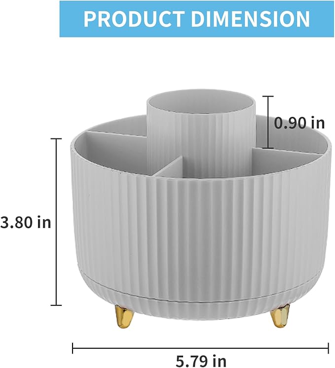 - 【Multipurpose Desktop Organizer】: This rotating storage organizer is perfect for pencils, cosmetics, bathroom necessities, toiletries, and even kitchen utensils. Try it in your craft room, playroom, laundry/utility room, and even inside bathroom cabinets or under the sink; Store extra office supplies like painting pens, correction tape, scissors, TV Remote, and more; Even headphones or a charger will no longer be lying around in the future! Maximize your vertical space and keep your desk clear