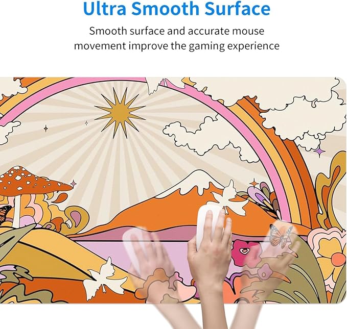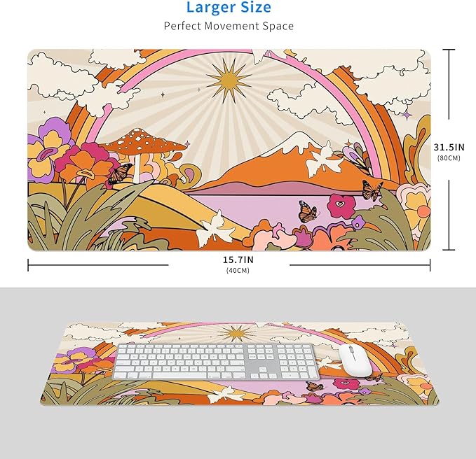 MAYCARI Cute Desk Mat Retro Flowers Clouds Sun and Rainbow Orange Boho Aesthetic Desk Pad Mouse Pad Gaming Mousepad XXL Laptop Keyboard Desktop Writing Pad for Girls Students 31.5"X15.7"