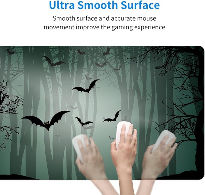 MAYCARI Halloween Cute Bat Mouse Pad Kawaii Cartoon Funny Spirit Extended Desk Mat Non-Slip Rubber Baseb Large Green Mousepad for Desk Gaming Laptop Desktop 31.5"X15.7"