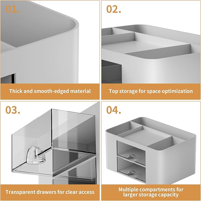 - 【Premium Material】This storage drawer organizer is crafted from durable ABS plastic, ensuring its strength and solidity for long-term use. The smooth operation of its drawers allows for easy opening and closing. Additionally, its waterproof design makes it effortless to clean, maintaining its pristine appearance over time.