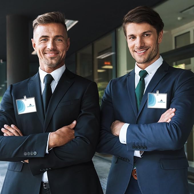 - Sturdy Metal Clips: our name badge clips are designed with swivelable metal clips, solid and reliable, friendly to your clothes, you can use them with confidence, and you can firmly attach the name badge holder on your collar, pocket, etc., with these clips
