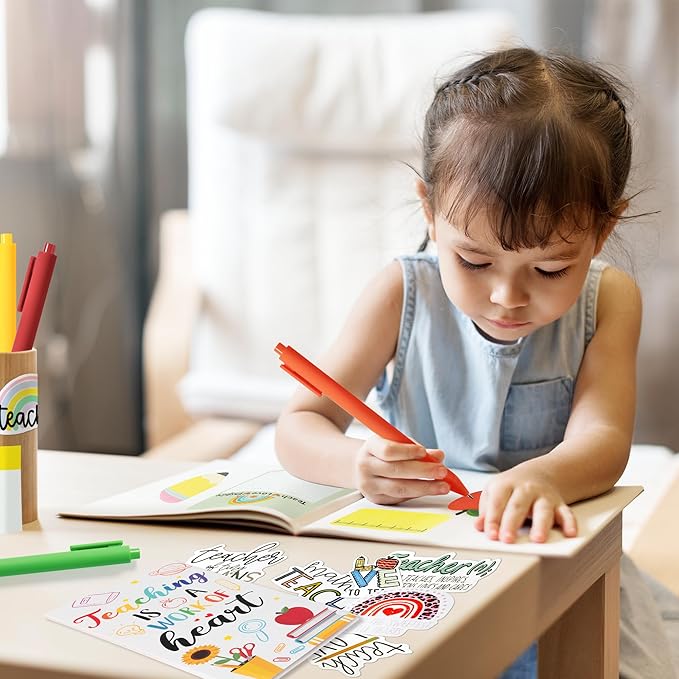 - Theacher Themed Stickers: Each sticker has a different pattern, which can be used to decorate notebooks, journals, bottle, calendar, guitar, skateboard or any other surfaces that you want to add a little bit of fun and whimsy to