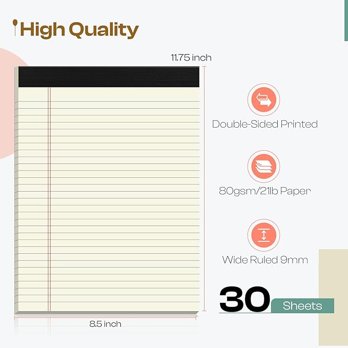 - Great Value: With each purchase, you will receive 12 packs of our wide ruled lined notes, totaling sheets. Our 8.5x11.75 inch size paper legal pads are ideal for taking notes, making bulleted lists, and quickly jotting down essential information