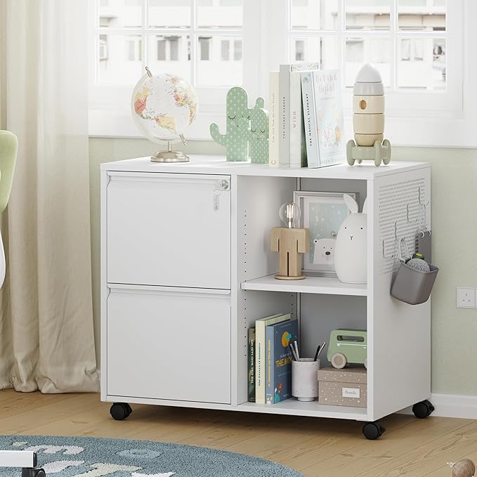 - 『Multifunctional Filing Cabinet』Lateral filing cabinet with open storage spaces, organization and storage drawers,holds printer stand and office craft storage,side hole panel design is beautiful and can hang items,modern delicate appearance ornamental to your office & home.