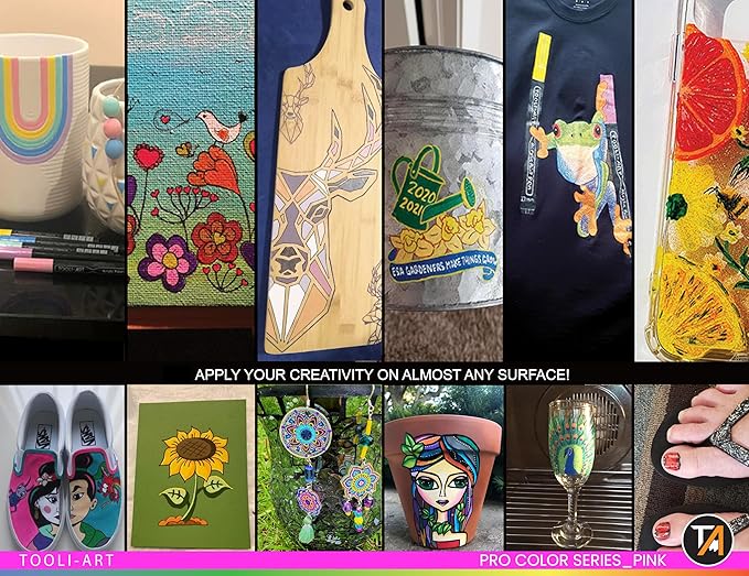 TOOLI-ART 22 Acrylic Paint Markers Paint Pens Pro Color Series Set 3mm Medium Tip for Rock Painting, Glass, Mugs, Wood, Metal, Glass Paint, Canvas, DIY. Non Toxic, Waterbased, Quick Drying (PINK)