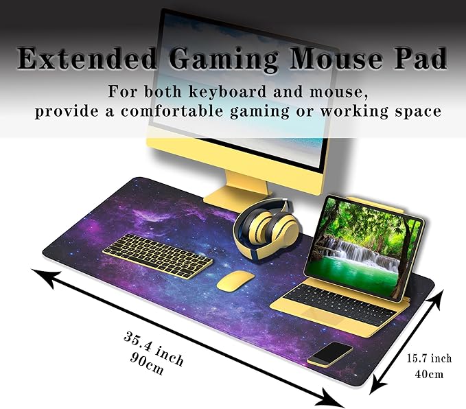 Mouse Pad Computer Desk Accessories Office Pad, Big Mouse Pads Desktop Mat, XXL Mouse Pad Gaming Non-Slip Rubber Base Waterproof with Stitched Edges, 35.4" X 15.7" for Work/Game/Office/Home