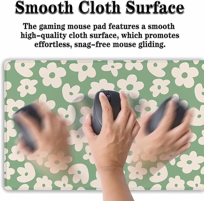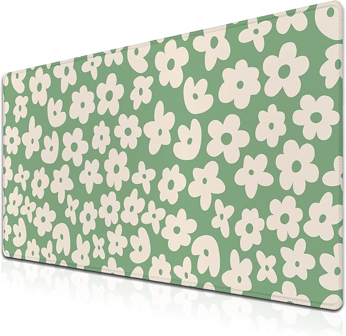 Large Gaming Mouse Pad - Green Keyboard Mouse Pads with Non-Slip Rubber Base, 35.4" X 15.7" for Game Office, Groovy Flowers