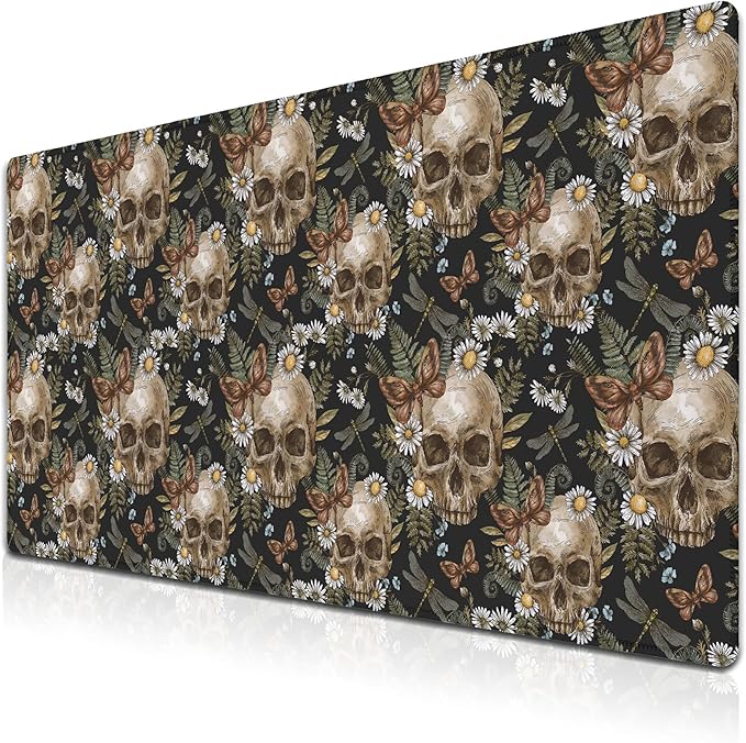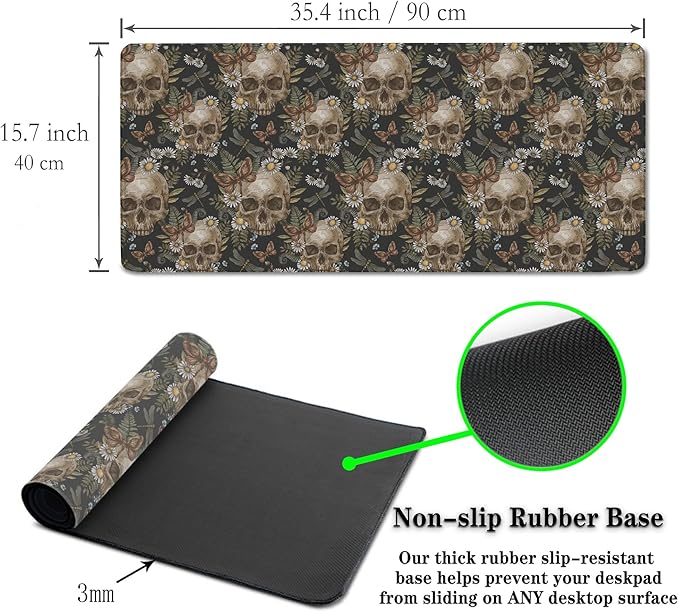 Large Mouse Pad Laptop Deskmat Computer Mats Desk Mats for Men Gaming Mouse Pad Long Desk Pad Waterproof Non-Slip Rubber Base 35.4 X 15.7 for Game Office, Vintage Floral Skull