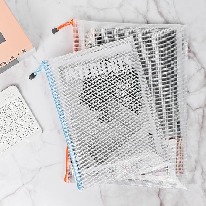- 12 Pcs Mesh Zipper Pouch Bags - The Package Includes 12 Pcs Mesh Zipper Pouches in 6 Different Colors:Pink, Grey, Orange,Purple, Blue, Black,1 Pcs for Each Color and 2 Sizes:6*A3 (16.54×11.69 inches), 6*A4 (13.5×9.5inch).The Uses for These Pouches are Endless and Heavy Duty.